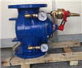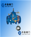 當管道從進水端給水時,由於針閥、球閥、浮球閥是常開的,水通過微型過濾器、針閥、控製室、球閥、浮球閥進入水池,此時控製室不形成壓力,主閥開啟,水塔(池)供水。當水塔(池)的de水shui麵mian上shang升sheng至zhi設she定ding高gao度du時shi,浮fu球qiu浮fu起qi關guan閉bi遙yao控kong浮fu球qiu閥fa,控kong製zhi室shi內nei水shui壓ya升sheng高gao,推tui動dong主zhu閥fa關guan閉bi,供gong水shui停ting止zhi。當dang水shui麵mian下xia降jiang時shi,遙yao控kong浮fu球qiu閥fa重zhong新xin開kai啟qi,控kong製zhi室shi水shui壓ya下xia降jiang,主zhu閥fa再zai次ci開kai啟qi繼ji續xu供gong水shui,保bao持chi液ye麵mian的de設she定ding高gao度du。