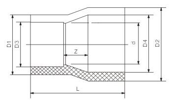特點:UPVC異徑接頭耐溫-10~65度,走的介質都是水,油,腐蝕性液體等