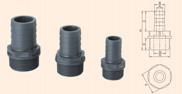 特點:UPVC軟管接頭(絲扣式)耐溫-10~65度,走的介質都是水,油,腐蝕性液體等